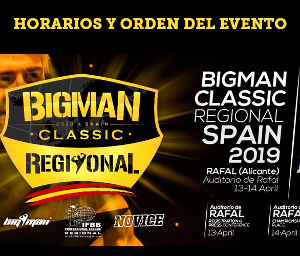 Os presentamos los horarios y orden del día del primer evento REGIONALS de nuestro país: IFBB BIGMAN CLASSIC REGIONALS 2019.