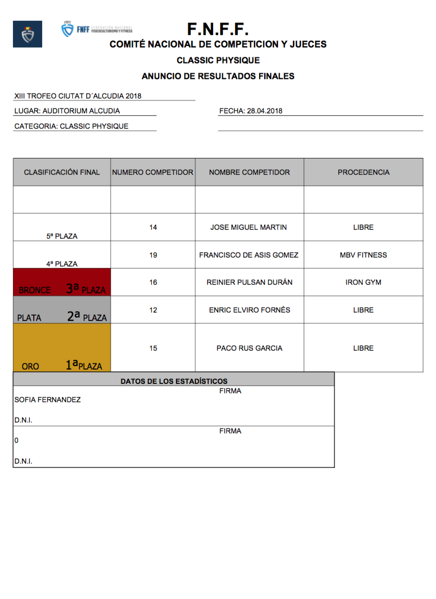 XIII Trofeo Cuidad de Alcúdia 2018 - Mallorca- Resultados y Galeria Fotografica
