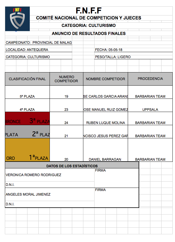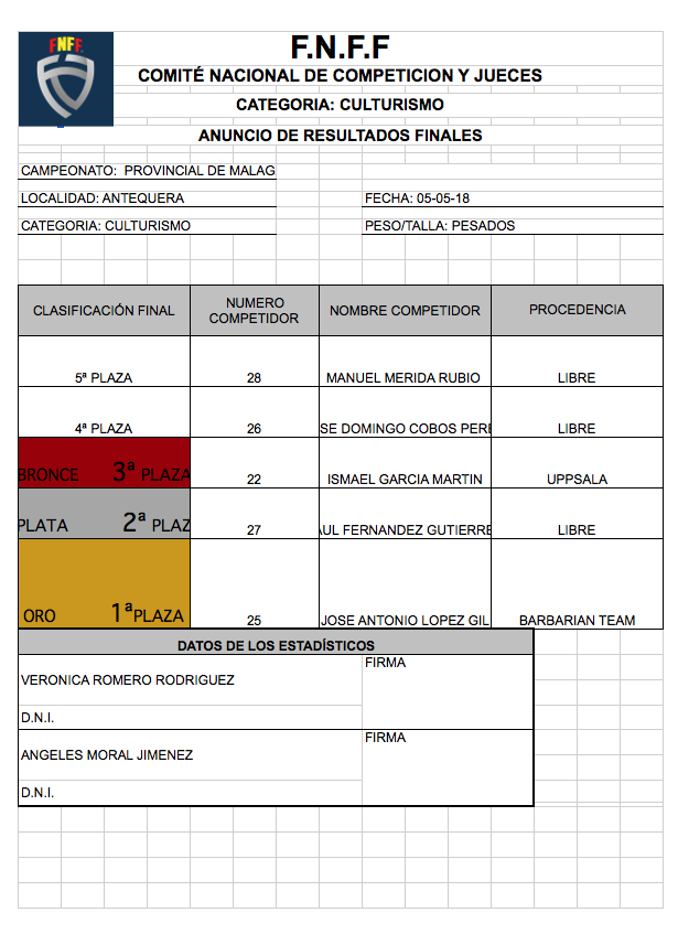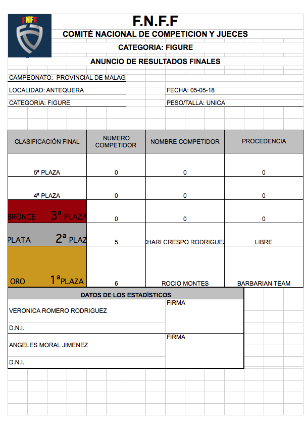 Cto. Provincial de Malaga FNFF 2018- Clasificaciones y Galeria Fotografica