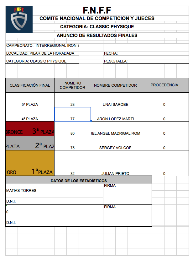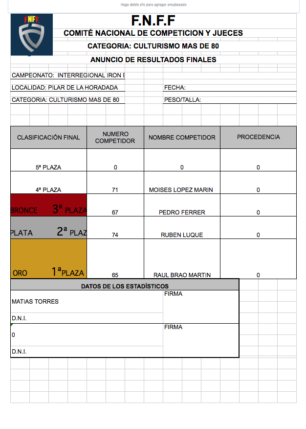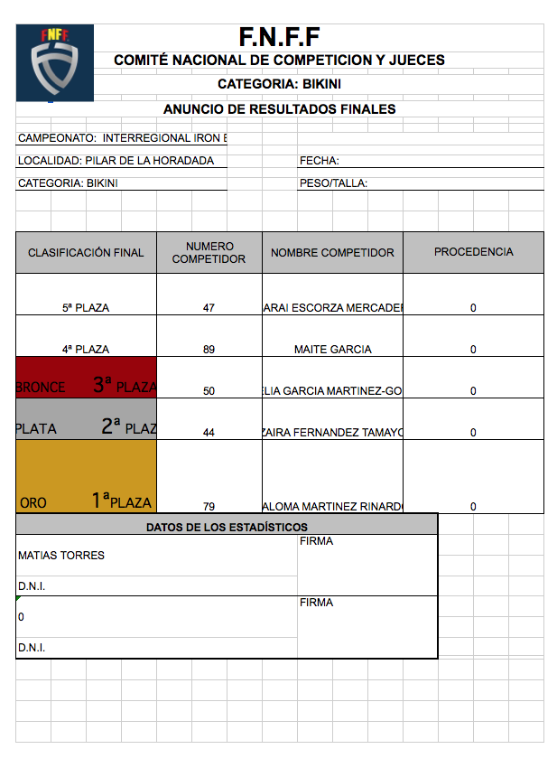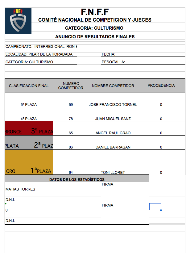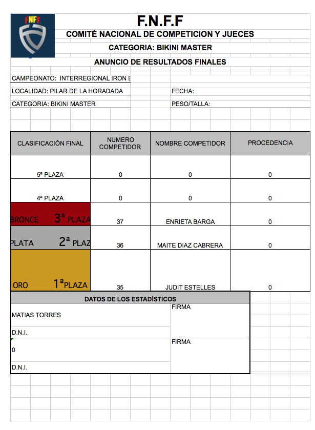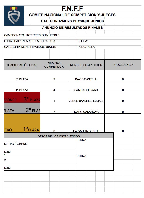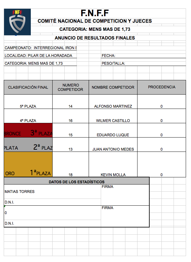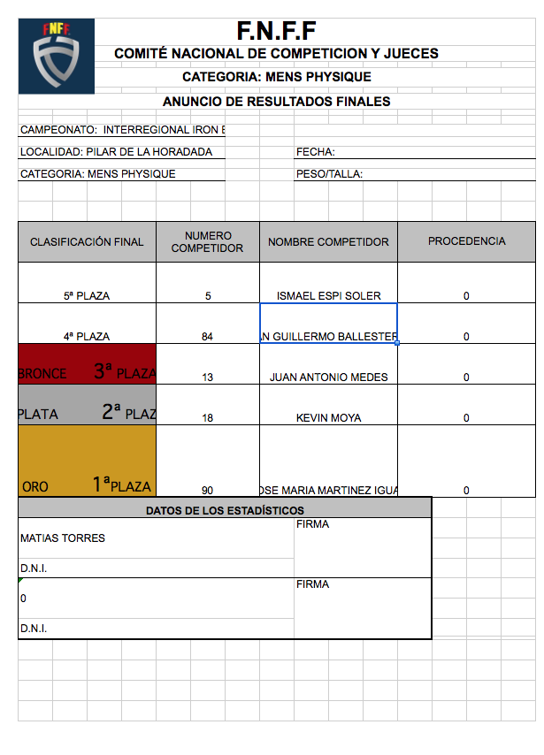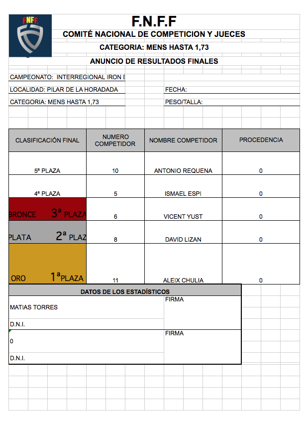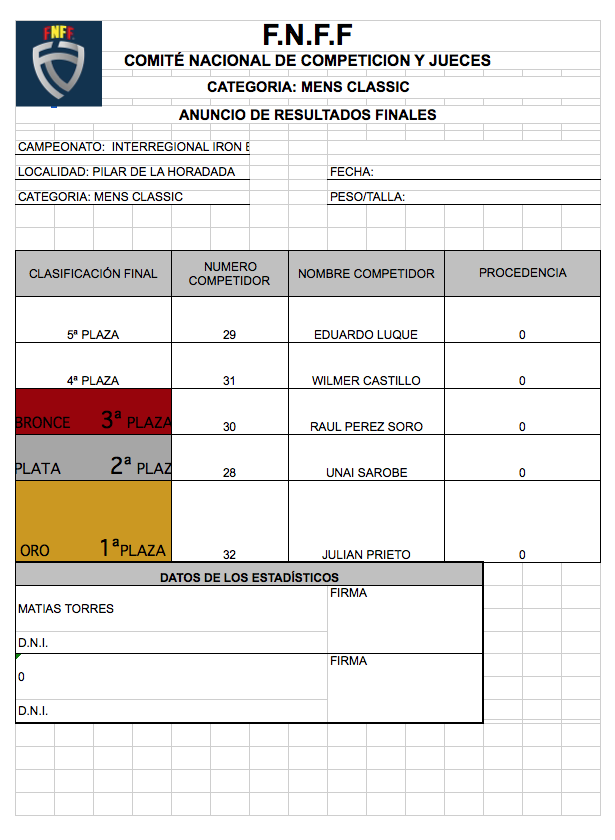 CLASIFICACIONES OPEN IRONBABY FNFF 2018