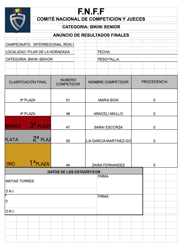 CLASIFICACIONES INTERREGIONAL IRONBABY FNFF 2018