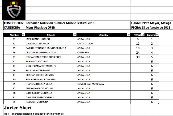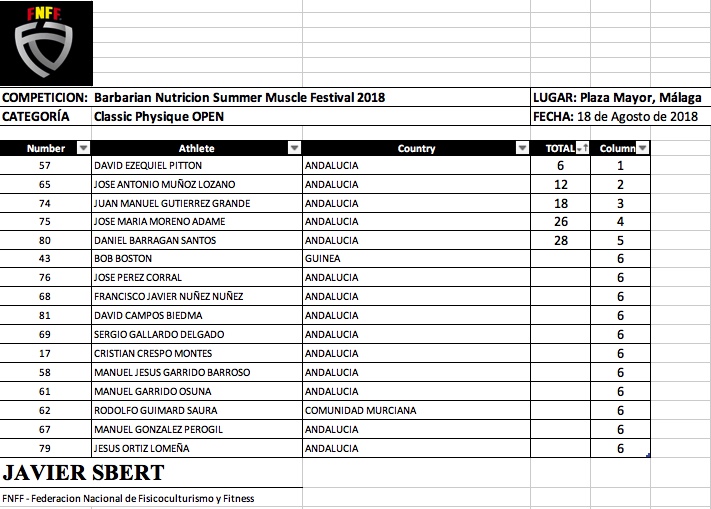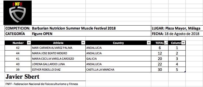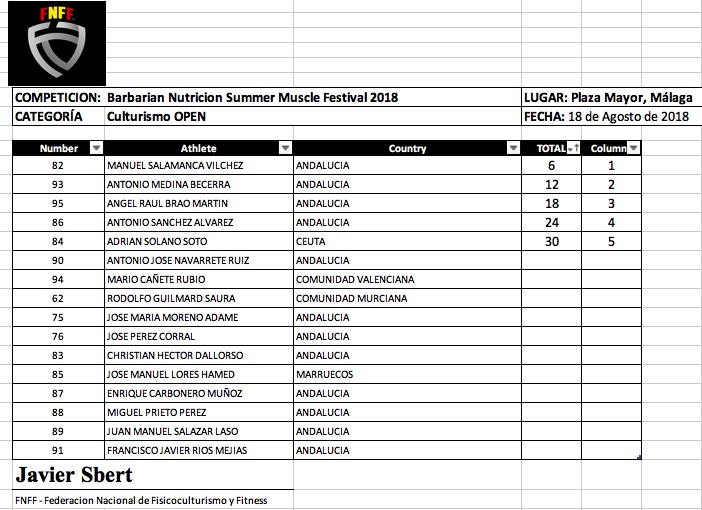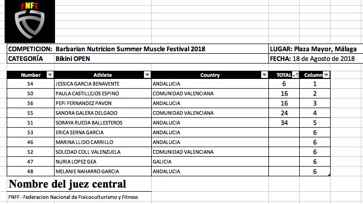 Barbarian Nutrición Summer Muscle Festival FNFF 2018- Clasificaciones y Galeria Fotográfica.