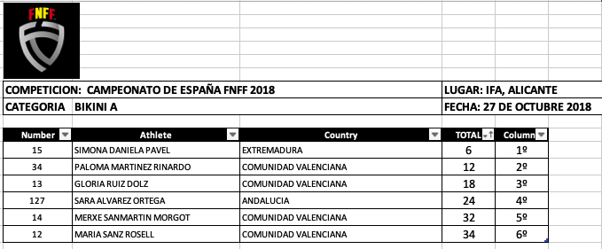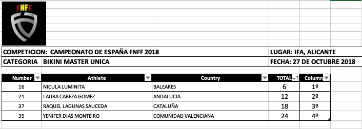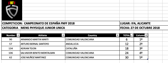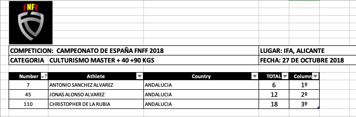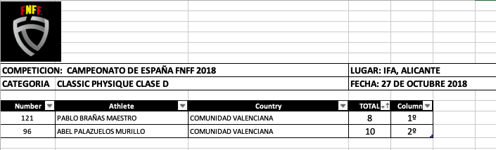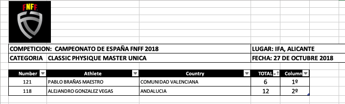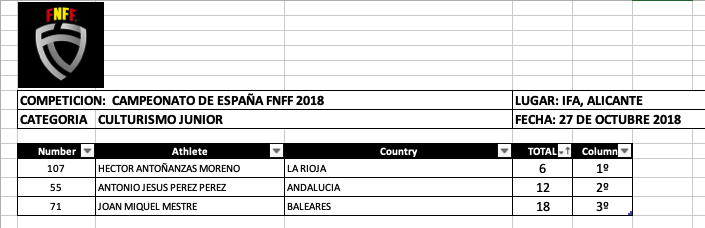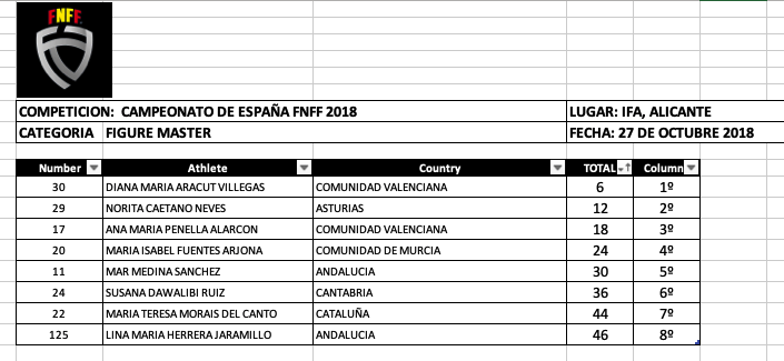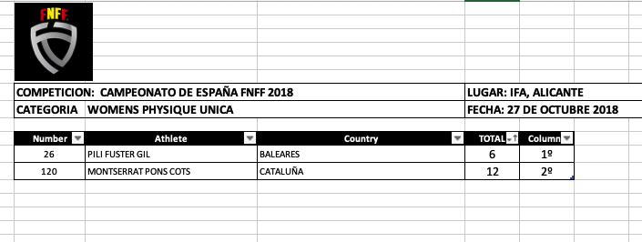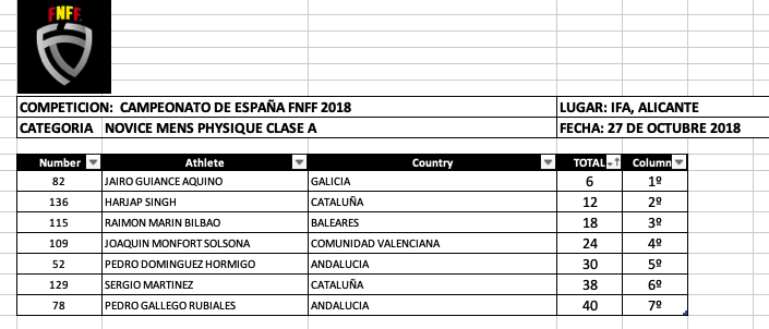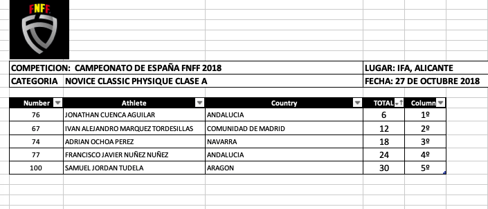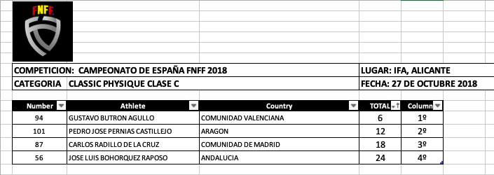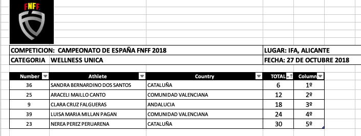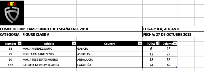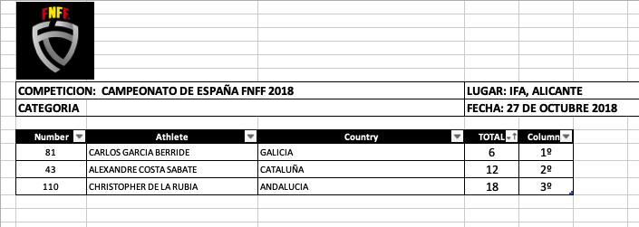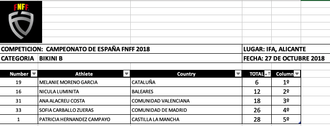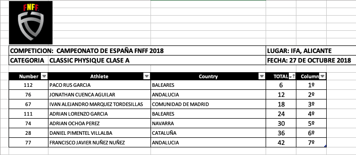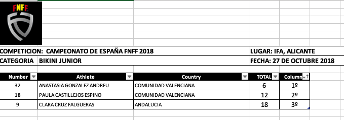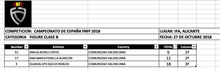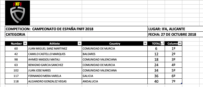 CLASIFICACIONES CTO. DE ESPAÑA ABSOLUTO FNFF 2018