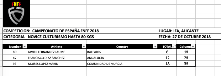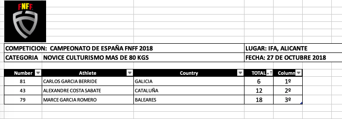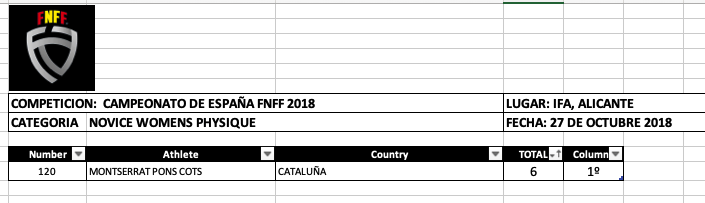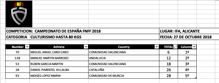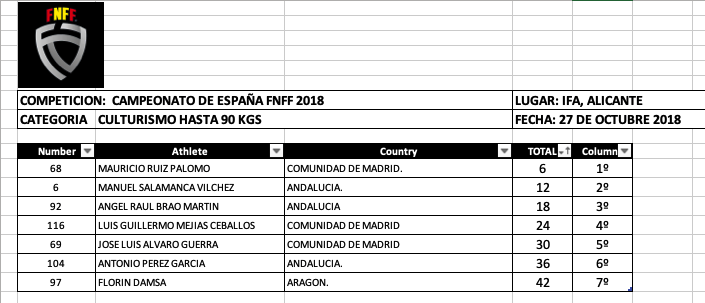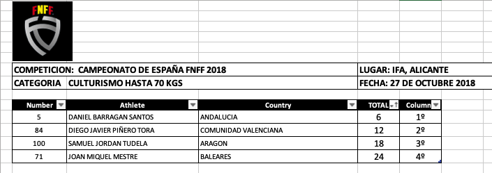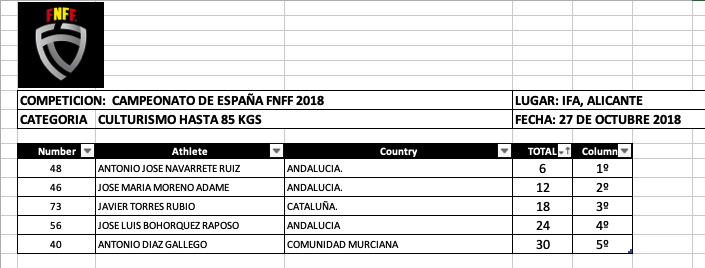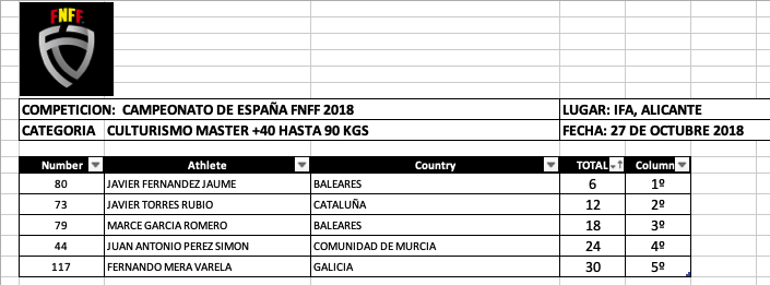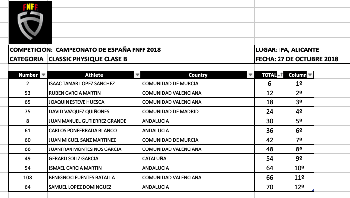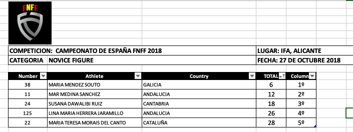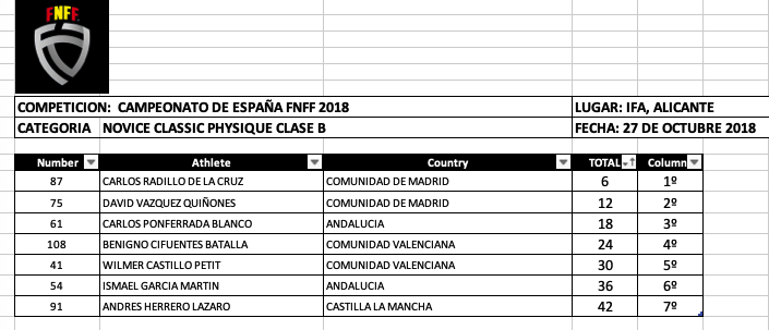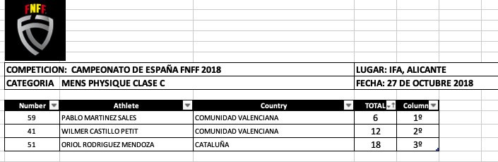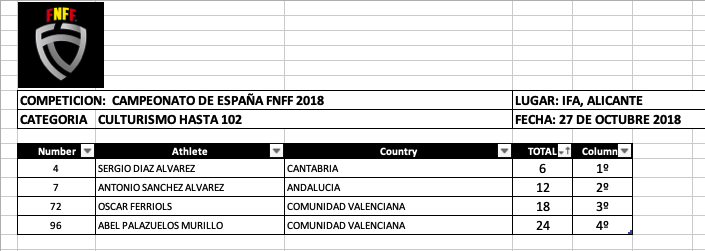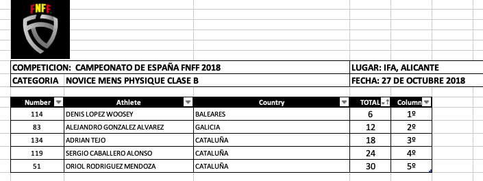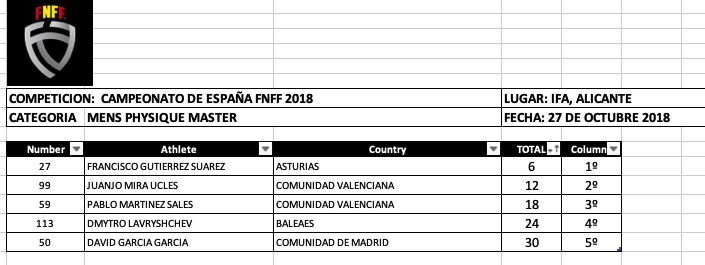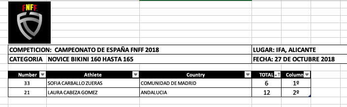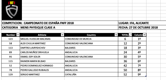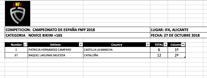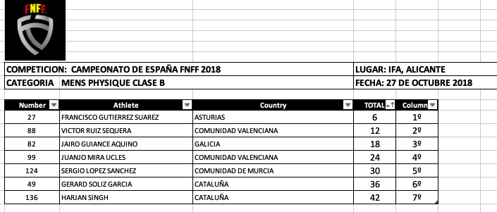 CLASIFICACIONES CTO. DE ESPAÑA ABSOLUTO FNFF 2018