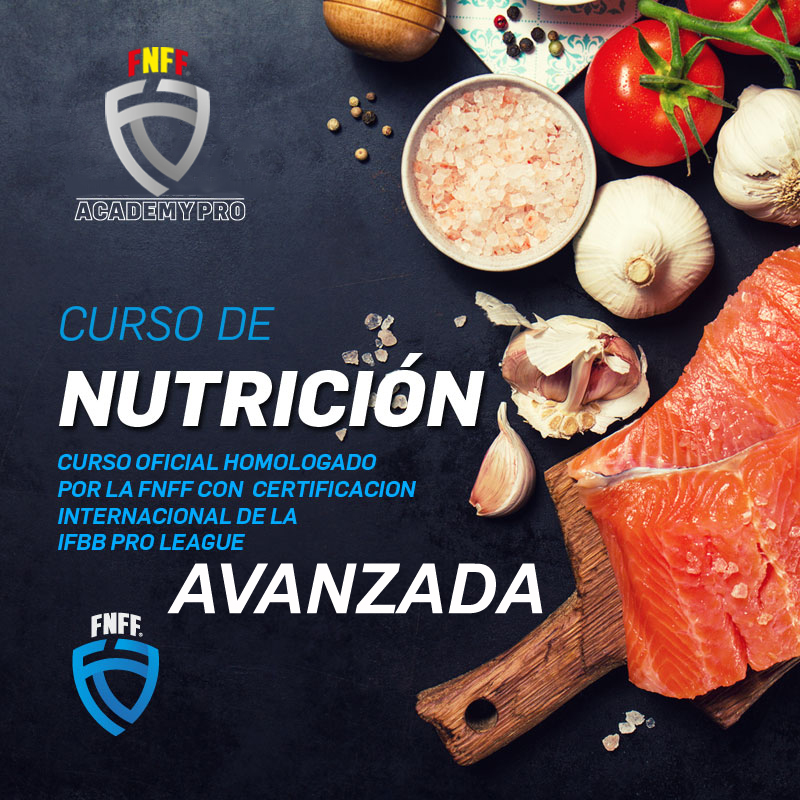 CURSO NUTRICIÓN AVANZADA FNFF, avalado por la IFBB PRO SPAIN, como parte del ciclo formativo de los cursos de la IFBB PRO – ACADEMY en la Comunidad Valenciana dirigido a profesionales, tanto nuevos como ya formados, que se quieran reciclar y personas interesadas en el mundo de la cultura física/fitness/culturismo para formarles en las técnicas de la elaboración y seguimiento de dietas y planes dietéticos.
