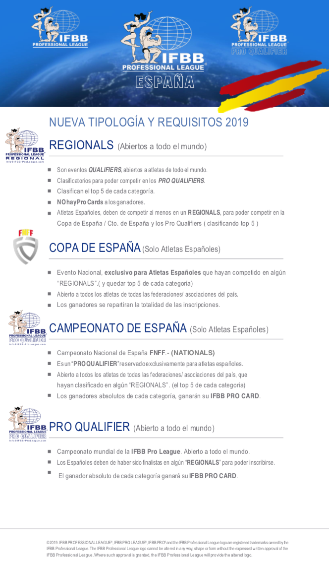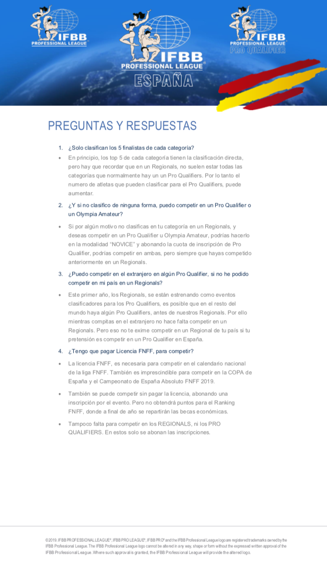 Requisitos y respuestas a preguntas básicas a como competir en la FNFF- IFBB PRO España 2019