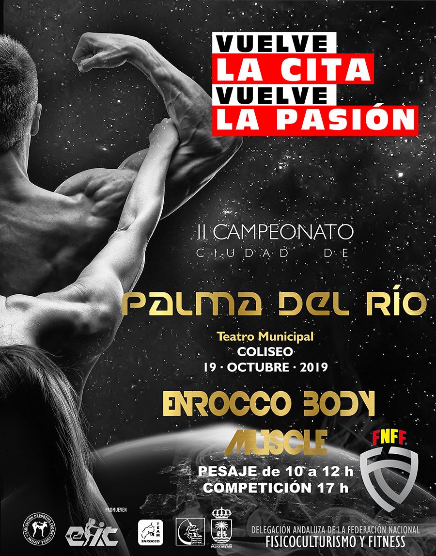 Por segundo año consecutivo, vuelve a Palma del Rio la cita obligada del mejor Fitness y culturismo del panorama nacional. ENROCCO BODY MUSCLE.