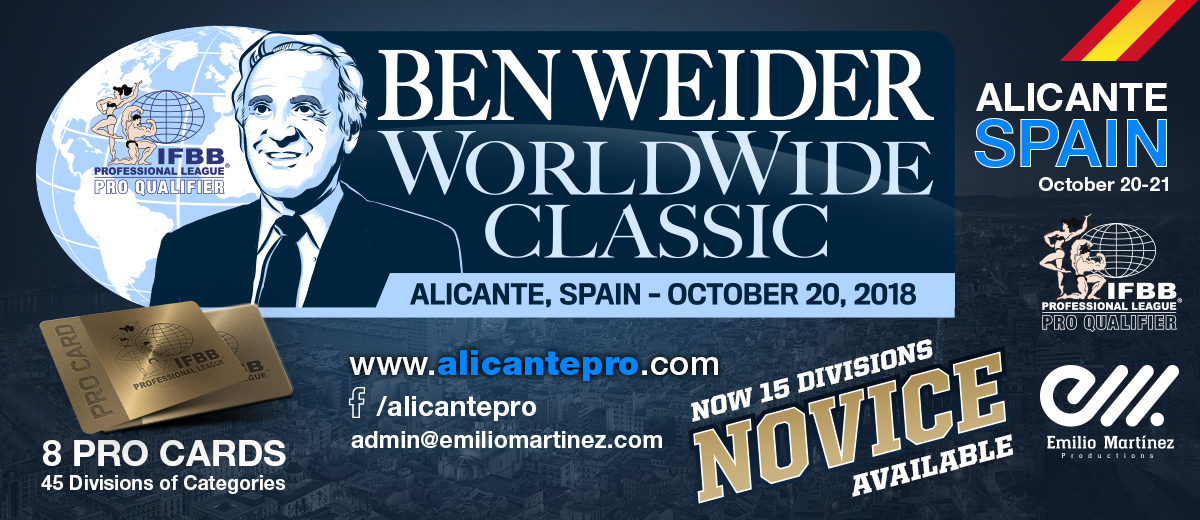 Estamos muy orgullosos de poder traer a España por primera vez en la historia, este evento que lleva el nombre de uno de nuestro fundadores: BEN WEIDER WORLDWIDE CLASSIC SPAIN. Un evento que trae consigo muchas sorpresas increíbles que a continuación vamos a intentar explicar.