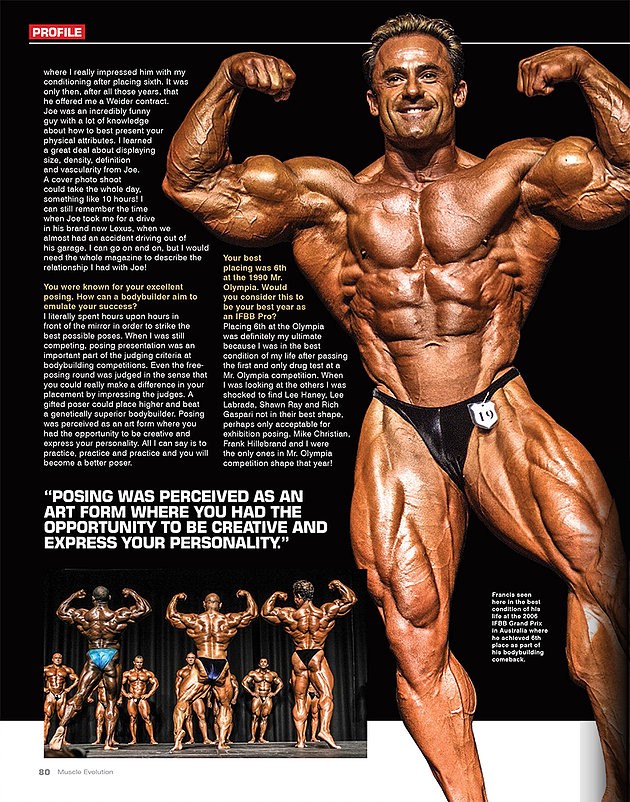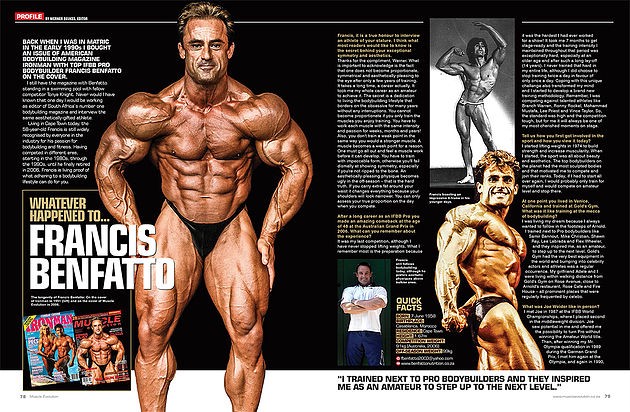 Cuando estaba en Matric a principios de la década de 1990, compré un ejemplar de la revista de culturismo estadounidense Ironman con el mejor culturista profesional IFBB Francis Benfatto en la portada. Todavía tengo la revista con Benfatto de pie en una piscina con su compañero competidor Tonya Knight. Nunca hubiera sabido que un día estaría trabajando como editor de la revista número uno de culturismo de Sudáfrica y entrevistaría al mismo atleta con talento estético.
