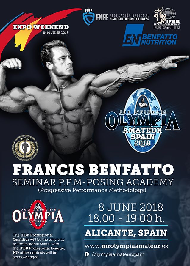 Notición! El gran profesional FRANCIS BENFATTO, nos ofrece por primera vez en España, un gran seminario exclusivo en la Expo Fitness Weekend Joe Weider´s Mr. Olympia Amateur Spain.